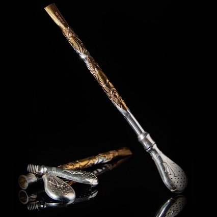 Бомбилья (bombilla) – трубочка, через которую пьют матэ. Дословно переводится как соломинка. Индейцы в качестве соломинок использовали тонкие полые стволы растений. Бомбилья состоит из наконечника, горловины и фильтра.